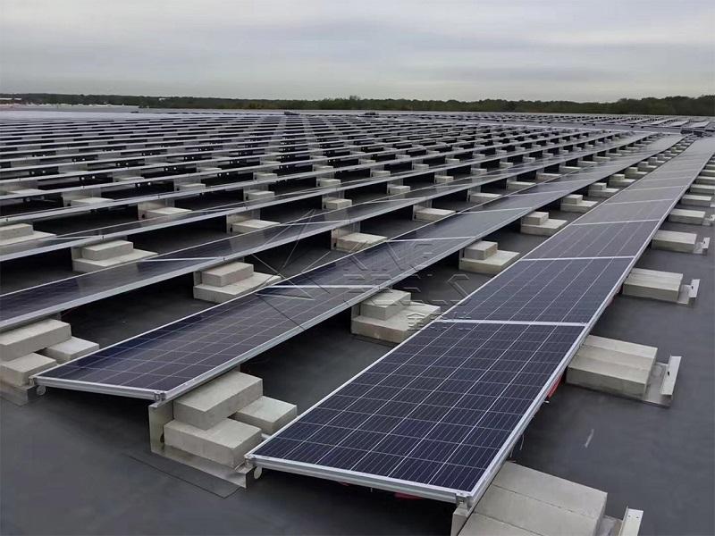 Este montaje de panel solar fotovoltaico de techo plano con balasto es el hardware de montaje de techo plano de menor costo y más fácil de instalar disponible.