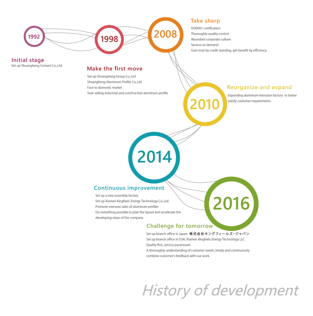Fujian Shuangheng Group, que tiene 28 años de historia y es la empresa matriz de Kingfeels, es una de las fábricas de extrusión de aluminio más grandes de la provincia de Fujian. Shuangheng Group integró todos los procesos de fabricación en nuestra propia fábrica, incluida la fusión de lingotes, la extrusión, el anodizado, el corte, el estampado, etc.