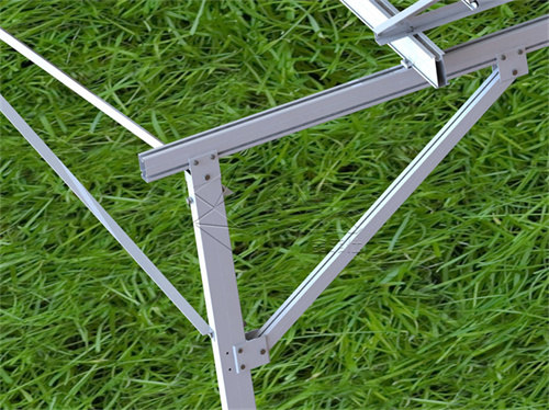El sistema de marco triangular ajustable se desarrolla para el sistema solar de techo y suelo. Se puede encontrar un ángulo fijo o ajustable, que podría ayudar a los paneles solares a obtener más energía solar durante los cambios de altitud solar. Se puede instalar con riel o sin riel, que puede ayudar a ahorrar costos y simplemente empaquetar.