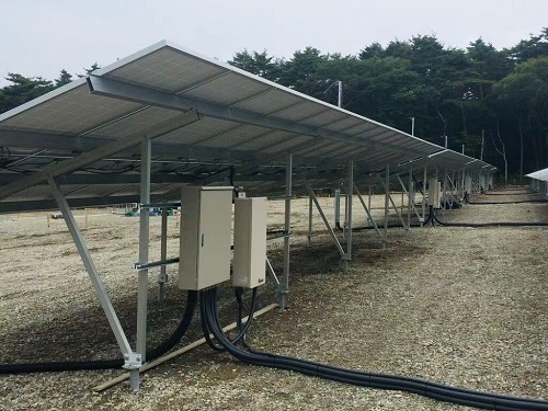 Kingfeels Energy ha instalado un proyecto de sistema de instalación solar terrestre en Japón e instaló el inversor en la estructura del panel directamente con una capacidad total de 2 MW.
