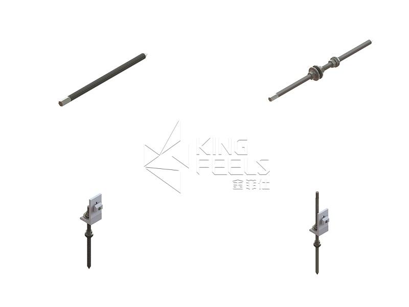 Los pernos de suspensión de acero tienen roscas en ambos extremos del sujetador y se unen en el centro del perno. Están diseñados para un orificio pretaladrado y son ideales para aplicaciones aéreas, como la suspensión de cableado eléctrico o láminas de metal de estructuras de madera. Estos sujetadores también pueden denominarse espárragos roscados.