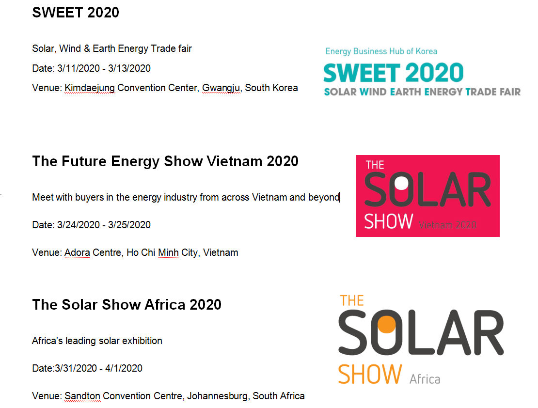 En 2019, el mundo promueve cada vez más el uso de energía verde, la solar fotovoltaica. Kingfeels aprovecha las oportunidades y, a través de una exploración continua y predicciones de mercado audaces, tiene participación estratégica en algunas exposiciones internacionales de energía en 2019 y se ha abierto de manera constante en algunos países y situaciones de mercado.