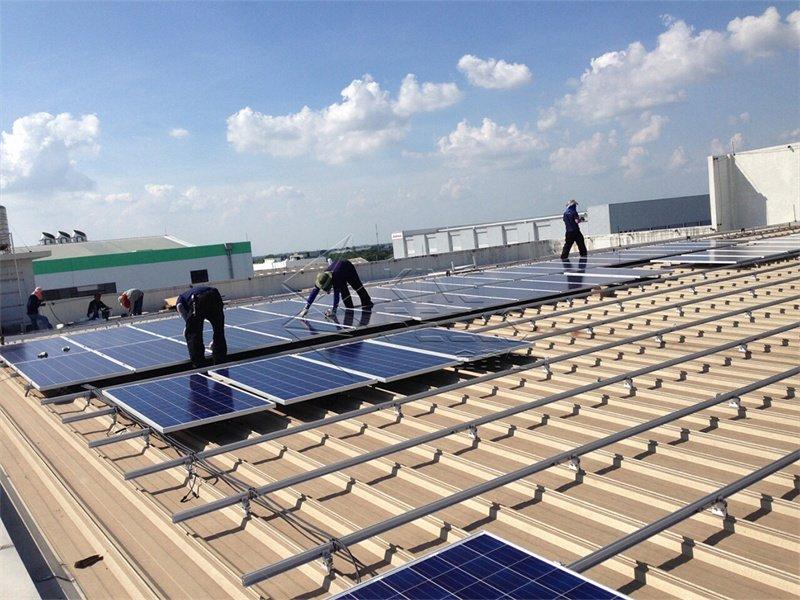 Sistemas de montaje de techos solares con costura alzada Se sujetan fácilmente en el techo con costura plegada. Las abrazaderas están especialmente diseñadas para atrapar la junta alzada de manera efectiva.